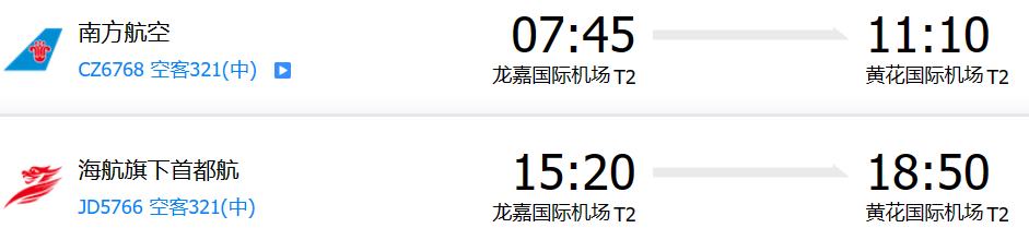 長春龍嘉國際機(jī)場有直飛長沙黃花機(jī)場的航班,具體航班參考: