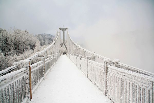 決定去天門山,一個很重要的原因就是想坐一下這個世界第一的索道——長7000多米,高1000多米,從市內(nèi)直接就到了天門山頂,既刺激又輕松。一大早到了索道站,天門洞景區(qū)由于下雪封路沒法游覽,256的票價減少到225,連最著名的景點都去不了,看來真是來坐長途索道了。