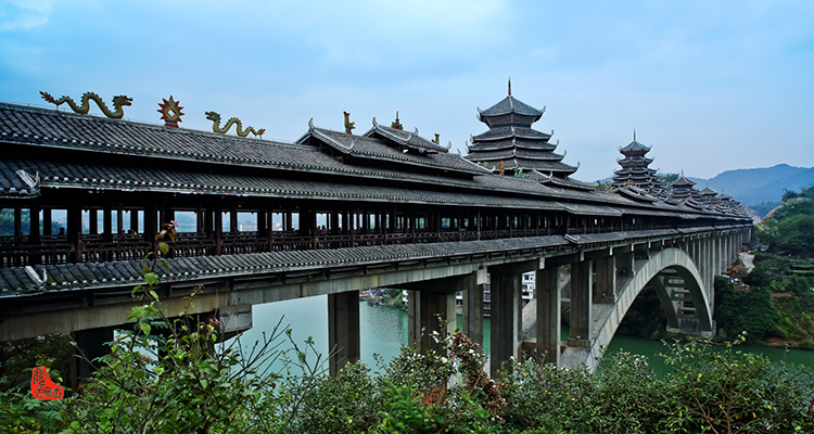 風(fēng)雨橋(又稱(chēng)“花橋”)橫跨溪流,既是交通要道,也是侗族人乘涼、對(duì)歌、社交的場(chǎng)所,橋身雕刻精美,充滿(mǎn)藝術(shù)氣息。
