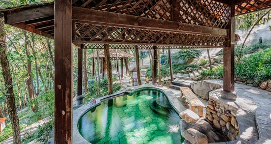 萬福溫泉屬天然自涌溫泉,清澈碧透,常年恒溫53℃,富含偏硅酸、氡等多種有益人體健康的天然礦物質(zhì),既可直接飲用,又有醫(yī)療保健作用,據(jù)權(quán)威機(jī)構(gòu)檢測(cè),萬福溫泉是中國最大的氡溫泉資源。