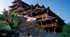 九重天世襲堂是土家風情園的精華和靈魂所在。該建筑由土家民間藝人李宏進設(shè)計,依80度陡坡而建,高48米,共9重12層,整個樓房全部用木栓連接,沒有一顆鐵釘,堪稱土家族建筑史上的奇跡。2002年9 月22日,九重天吊腳樓被載入世界吉尼斯世界紀錄,認定其為目前中國最大、最高、最完美的木質(zhì)結(jié) 土家風情園構(gòu)吊腳樓。