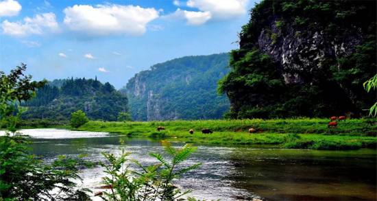 起伏的山巒青江白崖,崖壁環(huán)繞,有狀如鯤鵬展翅者,有形似塔尖聳天者。奇形怪異,變幻莫測(cè)。