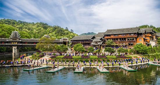 觀看皇都侗族文化村藝術(shù)團(tuán)的精彩表演,則是另外一番享受,《敬酒歌》 、《扯扯摸》 《踩簸箕》 、 《禾桿歌》、 《鬧茶》 《搶蛋》、《板凳情歌》 、《筒地咯羅鬧歌堂》等一組民族色彩十分濃厚的文化節(jié)目匯集了侗族傳統(tǒng)文化的精華,輕歌曼舞,回腸蕩氣,于行云流水間透出一種陽(yáng)剛之美。