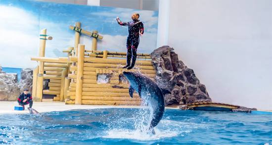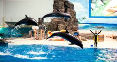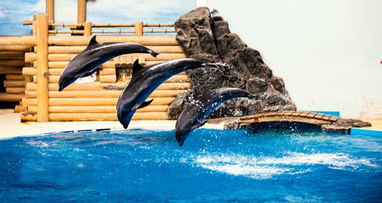 極地館:主要為極地動物區(qū),分為白鯨池、海獅池、海豚池、海豹池、企鵝池、水獺池等水生生物展示休息表演池,以及北極狼舍、北極狐舍等陸生生物展示休息籠舍。館內(nèi)建有一個高大寬敞明亮,音響等設(shè)備設(shè)施先進(jìn)配備LED大型顯示屏的表演劇場,可供1800多游客同時近距離觀賞海豚、海獅等精彩表演。